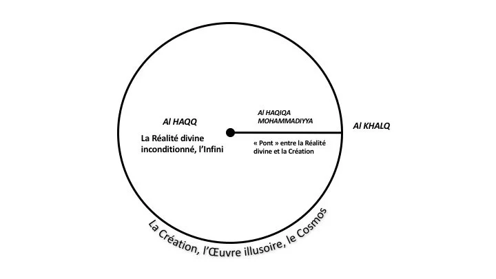 Réalisons comment cette vibration originelle de l’ordre divin, cette parole primordiale, se manifesta en tant que NÛR MOHAMMADIYYA, la lumière Mohammadienne que l’on peut dire aussi HAQÎQA MOHAMMADIYYA, la Réalité Mohammadienne. En effet, la première lumière apparue hors du rideau du NON-ETRE est la lumière de notre Prophète Mohammad (saw), c’est-à-dire son essence lumineuse profonde (bâtina) dans le monde des archétypes (dhâtuhu al-nuraniya al-batina fi ‘âlam al ma’ânî). Selon les rapporteurs de hadith, il a dit : « Je suis le premier des prophètes à avoir été créé et le dernier à avoir été envoyé » (jami’ as saghir, Suyûthî). Il est celui que Dieu a appelé sirâj al-munîr, « le flambeau qui éclaire », de même qu’il avait parlé du soleil comme luminaire dont la lumière fait apparaître et distinguer toutes choses, de même les intelligences, les esprits, les intuitions pénétrantes (baça’ir) et les essences s’alimentent à la lumière de l’ELU.