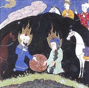 Idris-Hénoch fut élevé en un "lieu élevé" (makânan 'aliyyan) d'après le Coran est représenté, après le Déluge, par le Khidr et Elias qui tout deux burent à la Source de Vie